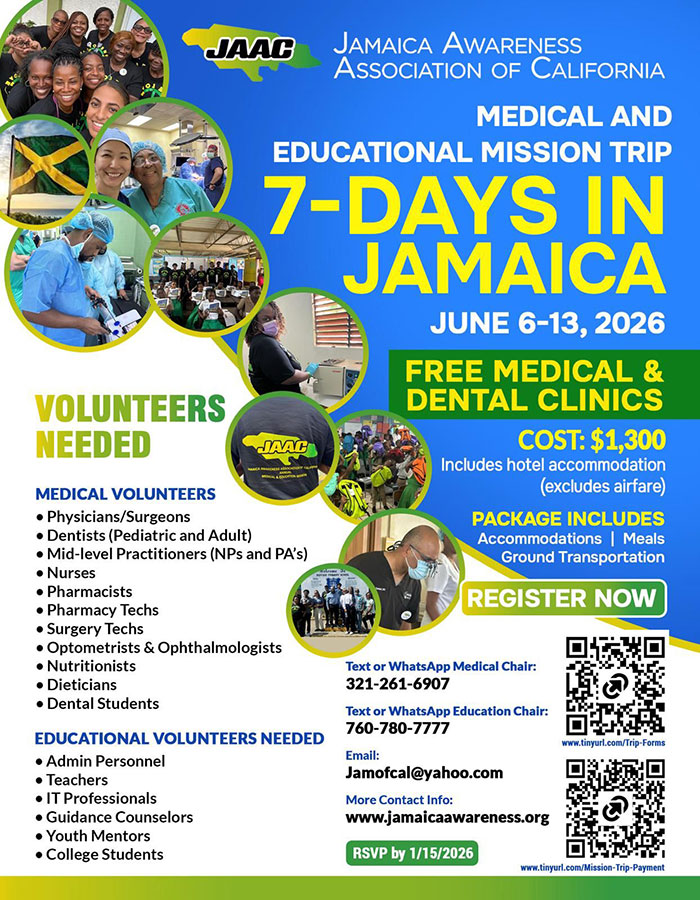On behalf of the governing board of the Jamaica Awareness Association of California (JAAC), I am pleased to invite you to participate in our 26th Annual Medical and Educational Mission to Jamaica, scheduled for June 6–13, 2026.